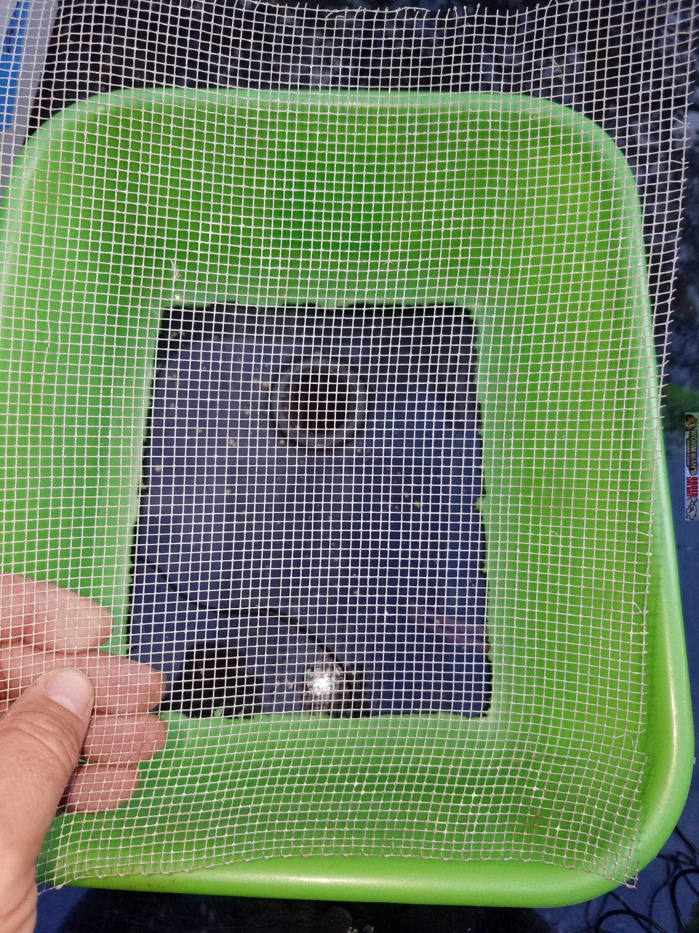 A roll of hardware cloth with small enough holes so that the beetles cannot get through but the bedding and eggs will still be able to be sifted out.
