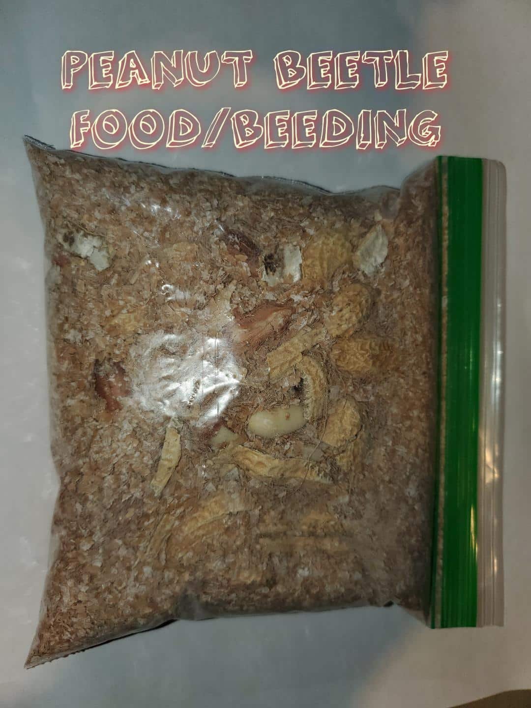 Our food is all that your Peanut Beetles will need to stay healthy, breed and thrive. The food contains a proprietary blend of ingredients which will not only feed your beetles and larvae, but will gutload them with nutrients.